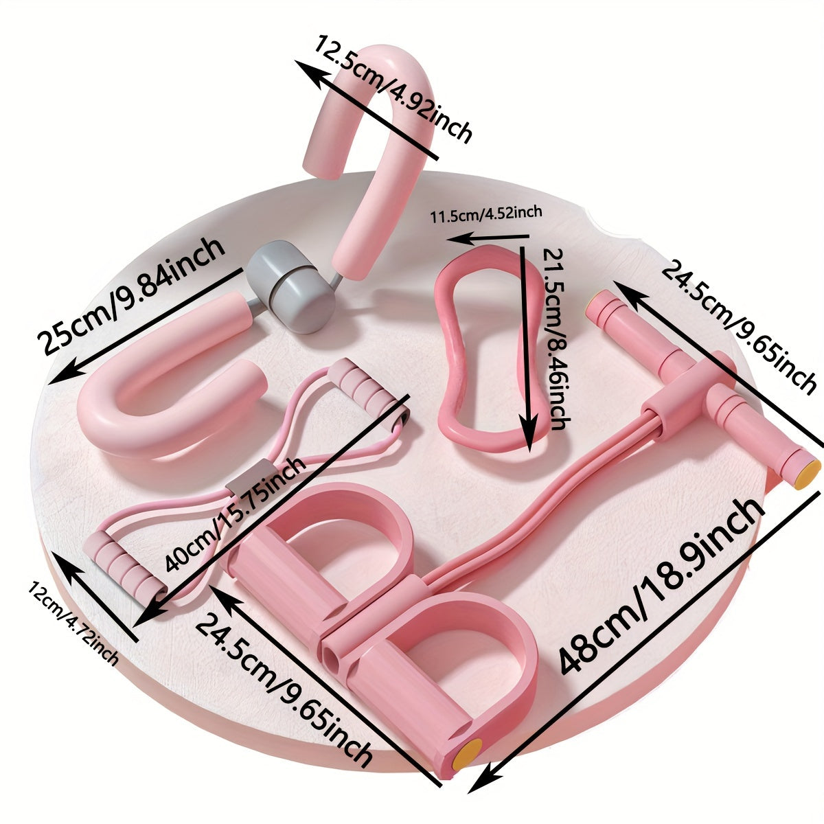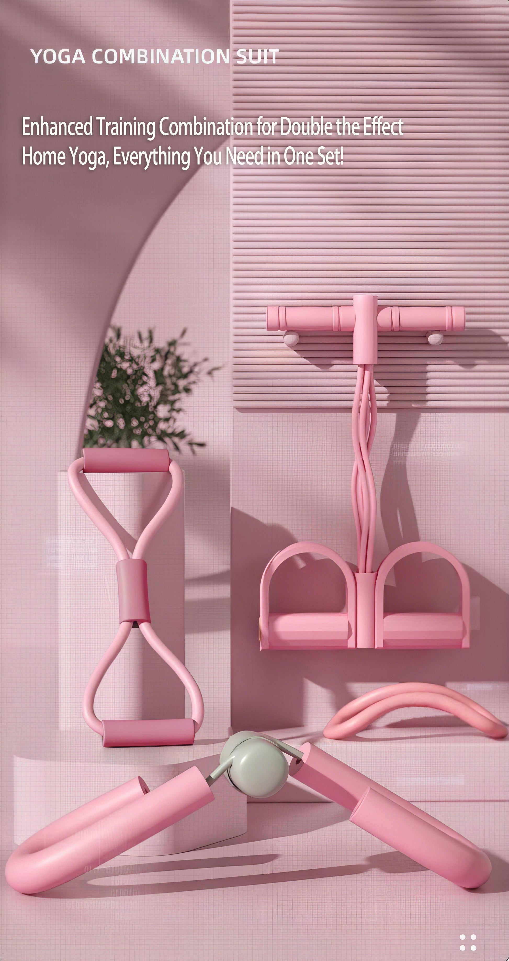 Set completo de 4 piezas para yoga y fitness, ideal para entrenamientos en casa. Fabricado en material PP duradero y resistente.